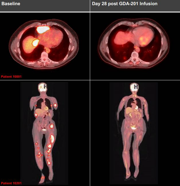 :在GDA-201(一种NK细胞疗法候选药物)的临床试验中,7例B细胞淋巴瘤患者的肿瘤负担明显减轻,其中3例实现了完全缓解,即体内已检测不到肿瘤病灶。
