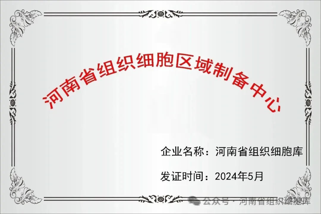 2024年正式获批“河南省组织细胞区域制备中心”